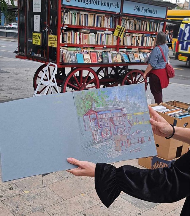 Csodaszép és kedves rajz készült tegnap a Nyugati téri könyvesszekerünkről. Köszönjük szépen az alkotónak!